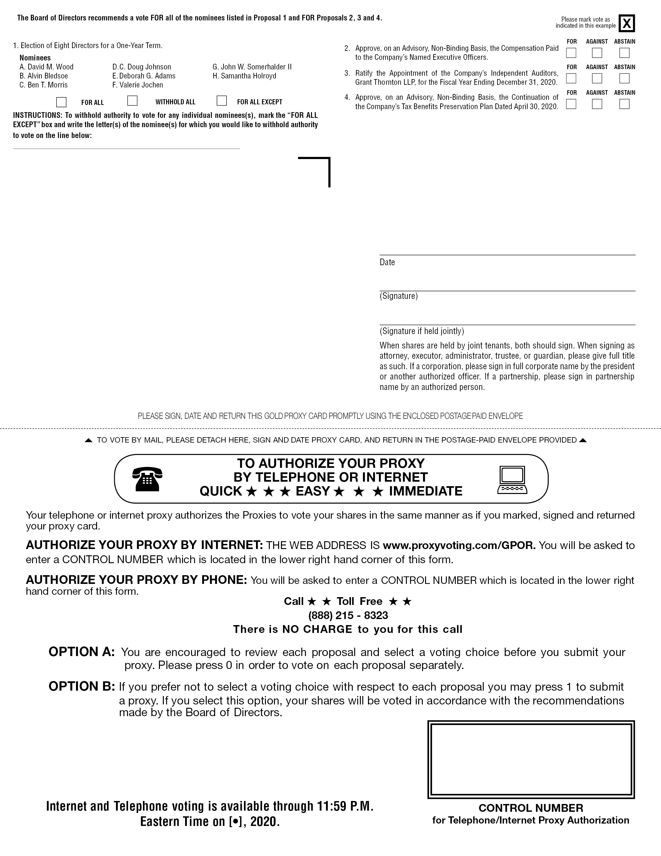In addition to the formal items of business to be brought before the Annual Meeting, there will be a report on our operations and a question and answer period. If you have any questions or require any assistance with voting your shares, please contact our proxy solicitor: Morrow Sodali LLC Email: GPOR@investor.morrowsodali.com |